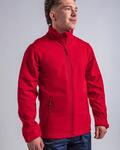 Standard fit, Full front zip, Printable two layer bonded softshell jacket, Zipped pockets, Chin guard, Internal storm flap, Adjustable shockcord hem, Windproof and showerproof