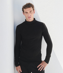 96% cotton/4% elastane. Single jersey. Stretch fabric for a modern fit. Enzyme wash. Soft touch. Fitted style. Self fabric roll neck. Longer length. Twin needle sleeves and hem. Tear out label.